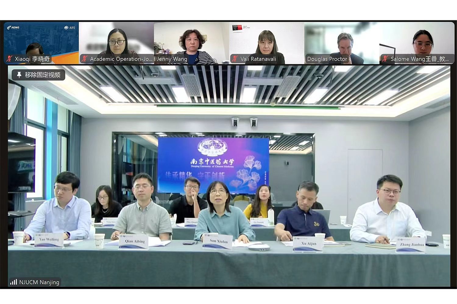 2025年9月22日,南京中医药大学与澳大利亚斯威本科技大学共同举办了公共事业管理专业2025年度项目管理委员会(JMC)会议。此次会议以线上线下相结合的方式举行,顺利完成了各项议程,并通过新一届委员会成员名单。 南京中医药大学副校长孙秀兰教授、斯威本科技大学副校长道格拉斯·普罗克特(Douglas Proctor)博士出席会议并分别发表致辞,对两校合作所取得的成果给予了积极肯定,并表达了进一步拓展合作领域的期望。两校国际事务、教务管理、学院及专业相关负责人均出席了此次会议。会议对上一届会议执行情况进行了回顾,确认了管理委员会成员的调整名单,并围绕招生注册、教学组织、学生管理、外教授课以及硕士项目新路径等议题展开了深入探讨。双方一致表示,将持续深化在课程建设、师资交流、科研合作等方面的合作,以推动项目实现高质量发展。新一届项目管理委员会将秉持更为务实的工作态度,推动两校在公共事业管理专业领域的合作迈向更深层次,为培养具有国际视野的高层次人才贡献力量。